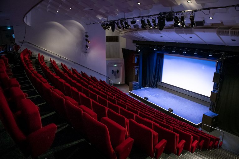 This superb theatre space has raked seating and a raised stage. The stage area measures 7m long x 3m deep x 300mm high. The lighting rig has a warm and cold wash with a down stage centre special and LED colour changers. It has a vocal PA with microphones. There is a generous dressing room and storage area for larger sets.